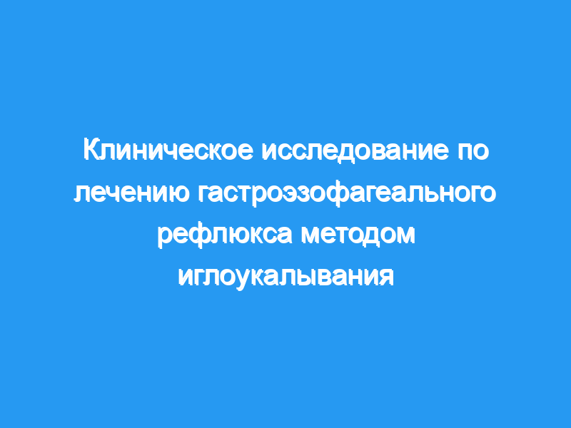 Изучить клиническую эффективность и безопасность иглоукалывания при лечении гастроэзофагеального рефлюкса (ГЭР).
