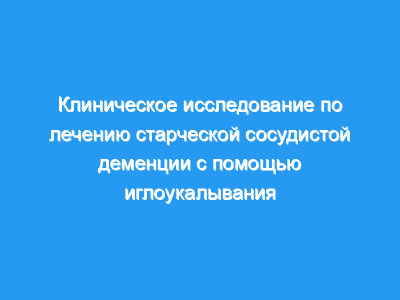 63 пациента со старческой сосудистой деменцией были случайным образом разделены на группу лечения (лечение иглоукалыванием) и контрольную группу (лечение пирацетамом). Авторы наблюдали за изменениями показателей шкалы деменции Хасегавы (HDS), p300, реоэнцефалограммы, топографической ЭЭГ, активности супероксиддисмутазы (СОД) в эритроцитах и уровня перекиси липидов (ПОЛ) в плазме до и после лечения.