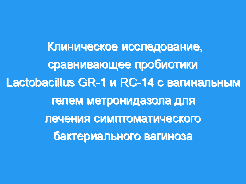 В этом исследовании 40 женщин с диагнозом БВ по выделениям, рыбному запаху, положительному тесту на сиалидазу и оценке окраски по Граму Ньюджента были рандомизированы для получения либо двух сухих капсул, содержащих Lactobacillus rhamnosus GR-1 и Lactobacillus reuteri RC-14, каждую ночь в течение 5 дней, либо 0,75% гель метронидазола, наносится вагинально два раза в день (утром и вечером). Последующее наблюдение на 6, 15 и 30-й день показало излечение БВ у значительно большего числа пациентов, получавших пробиотики (16, 17 и 18/20 соответственно), по сравнению с лечением метронидазолом (9, 9 и 11/20: Р=0,016 на 6-й день, Р=0,002 на 15-й день и Р=0,056 на 30-й день). Это первое сообщение об эффективном (90%) лечении БВ с использованием пробиотических лактобацилл.