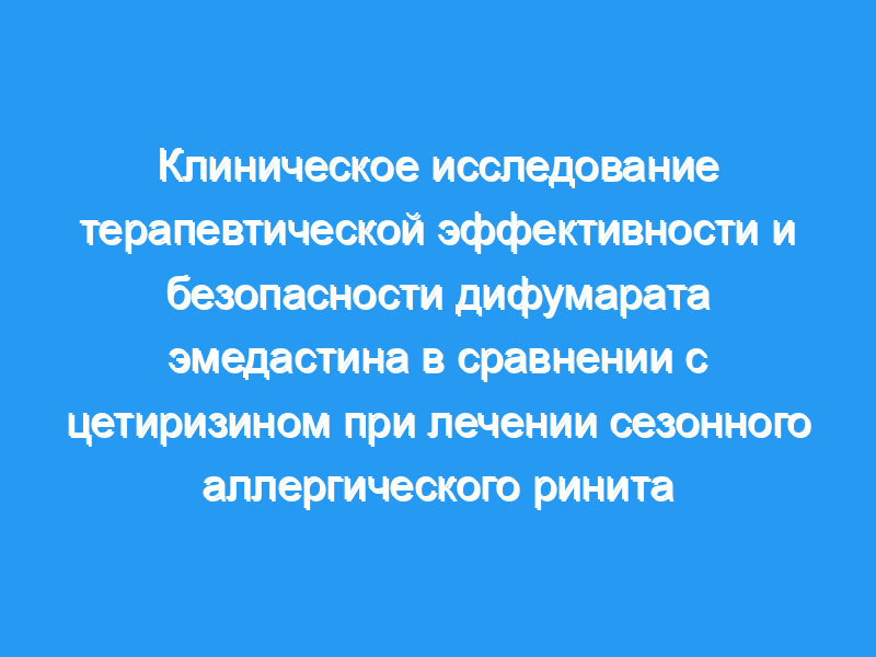 Оба препарата, исследуемых в этом исследовании, по-видимому, эффективны для облегчения симптомов сезонного аллергического ринита у взрослых пациентов европеоидной расы. Результаты показывают, что эмедастин в дозе 4 мг внутрь сравним по эффективности с цетиризином в дозе 10 мг один раз в день при симптоматическом лечении сезонного аллергического ринита. Более того, основываясь на результатах этого исследования, эмедастин можно считать безопасным и хорошо переносимым препаратом, и его профиль безопасности, по-видимому, напоминает профиль безопасности цетиризина.