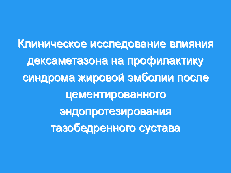 Обсудить влияние дексаметазона на предотвращение синдрома жировой эмболии (FES) у пациентов с цементированным эндопротезированием тазобедренного сустава.