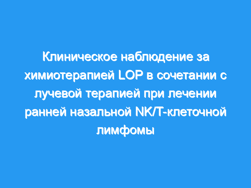 Цель: Изучить эффективность и безопасность химиотерапии LOP (аспарагиназа + винкристин + дексаметазон) в сочетании с лучевой терапией у пациентов с назальной NK/T-клеточной лимфомой.