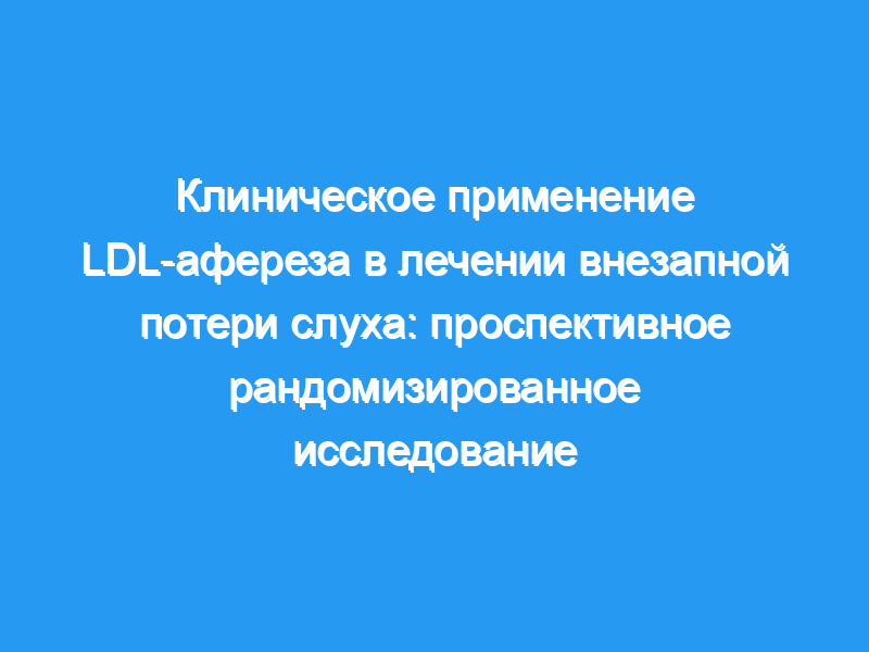 Целью этого исследования была оценка эффекта экстракорпоральной процедуры (H.E.L.P.) при удалении холестерина ЛПНП, фибриногена и липопротеина (а) из плазмы, при восстановлении слуха SHL. Эта процедура с использованием справочной системы сравнивалась с обычным стандартным лечением преднизолоном, декстранами и пентоксифилли.