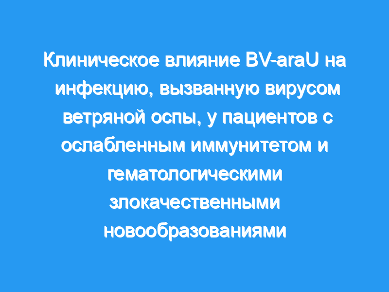 Мы оценили лечение инфекции ветряной оспы BV-araU у пациентов с ослабленным иммунитетом и гематологическими злокачественными новообразованиями в рандомизированном контролируемом исследовании.