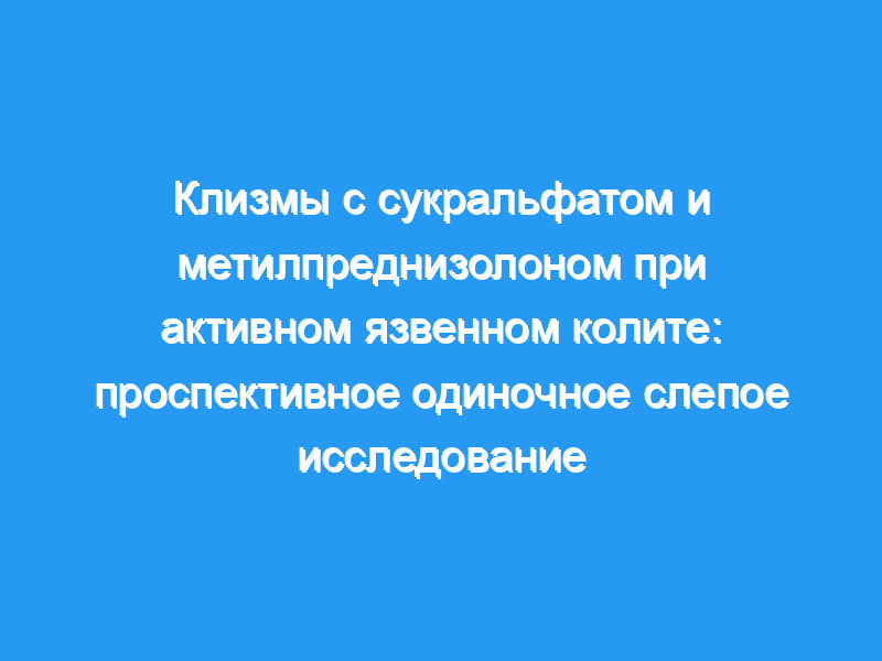Чтобы исследовать роль сукральфата при активном язвенном колите, 60 пациентов были рандомизированы для получения либо сукральфатных клизм (20 г/100 мл), либо метилпреднизолоновых клизм (20 мг/100 мл). Клизмы вводили два раза в день в течение одной недели, а затем один раз в день в течение трех недель.