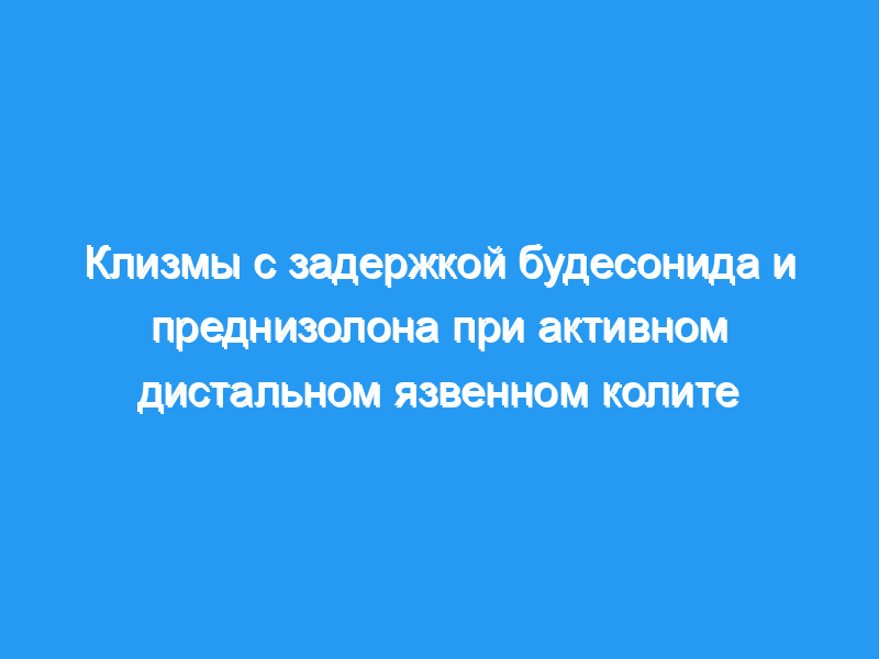 Эффективность и безопасность удерживающей клизмы местного действия с глюкокортикостероидом будесонидом (2,3 мг/115 мл) сравнивали с клизмой с динатрийфосфатом преднизолона (31,25 мг/125 мл) у пациентов с активным дистальным язвенным колитом. Исследование представляло собой рандомизированное многоцентровое исследование с двумя параллельными группами и одиночным слепым исследованием для исследователя. Сто пациентов с активным язвенным колитом, не выходящим за пределы изгиба селезенки, как было определено эндоскопией, получали лечение в течение 8 недель. Сорок пять пациентов были рандомизированы для получения будесонида и 55 — для приема преднизолона. Обе группы лечения значительно улучшились с точки зрения эндоскопической и гистологической оценки во время исследования, но статистически значимых различий между двумя группами не было. Клиническая ремиссия, определяемая как не более трех ежедневных испражнений без крови и эндоскопически невоспаленной слизистой оболочки, была достигнута у 16% пациентов в группе будесонида через четыре недели и у 24% в группе преднизолона (N.S.). После 8 недель лечения частота клинической ремиссии в группах увеличился до 36% для будесонида и 47% для преднизолона (N.S.). Средние утренние уровни кортизола в плазме крови не изменились в группе будесонида, тогда как в группе преднизолона они были значительно снижены через 2, 4 и 8 недель (P <, 0,0001). Побочные эффекты были умеренными и редкими в обеих группах.