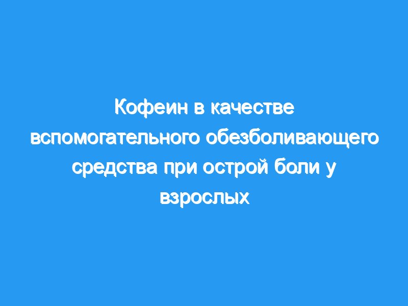 Оценить относительную эффективность при острой боли однократной дозы любого анальгетика плюс кофеин по сравнению с той же дозой одного анальгетика. Методы поиска: Мы провели поиск в базе данных CENTRAL, MEDLINE, EMBASE и Oxford Pain Relief до января 2012 года, а также провели поиск в Интернете и связались с фармацевтическими компаниями, которые, как известно, проводили испытания, которые не были опубликованы. Критерии отбора: Мы включили рандомизированные двойные слепые исследования, в которых сравнивалась однократная доза анальгетика плюс кофеин с той же дозой только анальгетика при лечении острой боли. Сбор и анализ данных: Два автора обзора независимо оценивали приемлемость и качество исследований и извлекали данные. Любые разногласия или неопределенности были урегулированы путем обсуждения с третьим автором рецензии. Мы искали любой подтвержденный показатель обезболивающей эффективности, но особенно количество участников, испытавших по крайней мере 50% от максимально возможного облегчения боли в течение четырех-шести часов, участники сообщили о глобальной оценке лечения как очень хорошего или превосходного, или облегчение головной боли через два часа. Мы объединили сопоставимые данные, чтобы найти статистически значимую разницу, и рассчитали цифры, необходимые для лечения с пользой (NNT) с помощью кофеина. Мы также искали любое численное превосходство, связанное с добавлением кофеина, и информацию о любых серьезных побочных явлениях.