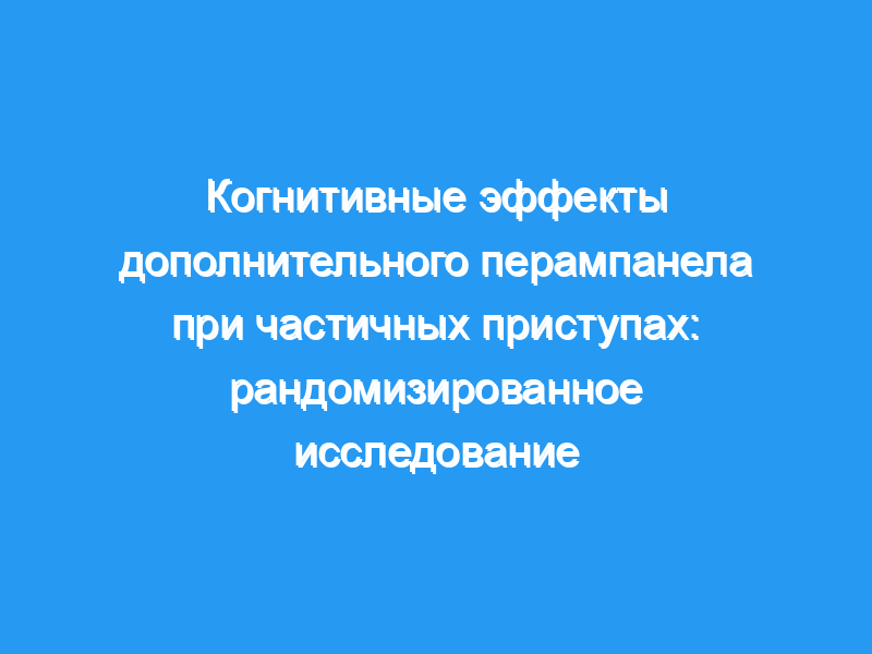 Сто тридцать три пациента были рандомизированы. В полном наборе анализов не было различий между перампанелом (n = 79) и плацебо (n = 44) в глобальном показателе когнитивных способностей системы CDR (среднее значение наименьших квадратов, -0,6 против 1,6, p = 0,145), Качестве рабочей памяти (1,1 против 2,0, p = 0,579) или Сила внимания (-6,9 против -2,7, р = 0,219). Были небольшие различия между перампанелом и плацебо в других областях системы CDR: улучшение качества эпизодической памяти (3,0 против -1,2, р = 0,012) и ухудшение непрерывности внимания (-3,3 против 1,6, р = 0,013) и Скорости запоминания (0,3 против 7,0, р = 0,032). Беглость письма, беглость категорий и LGPT существенно не различались между группами. Наиболее частыми нежелательными явлениями при применении перампанела были головокружение (30,6%) и сонливость (15,3%). Значимость: Перампанел не отличался от плацебо по глобальному когнитивному баллу, двум из пяти поддоменов и четырем другим когнитивным показателям. Perampanel была хуже на двух и лучше на одном поддомене.