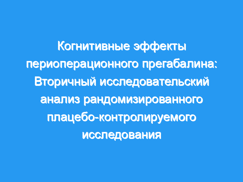 Прегабалин продемонстрировал опиоидосберегающий и обезболивающий эффекты в раннем послеоперационном периоде, однако периоперационное влияние на когнитивные способности не изучалось. Ранее было проведено рандомизированное параллельное групповое плацебо-контролируемое исследование с участием 80 пациентов с донорской нефрэктомией, в котором оценивались обезболивающие, опиоидсберегающие и антигипералгетические эффекты прегабалина. В этой статье описывается вторичный исследовательский анализ, который проверил гипотезу о том, что прегабалин может ухудшать когнитивные функции по сравнению с плацебо. В этом рандомизированном плацебо-контролируемом исследовании приняли участие восемьдесят пациентов, которым была запланирована донорская нефрэктомия. Прегабалин (150 мг два раза в день, n = 40) или плацебо (n = 40) вводили в день операции и в первый послеоперационный день в дополнение к обезболивающему режиму, состоящему из опиоидов, стероидов, местных анестетиков и ацетаминофена. Специфические когнитивные тесты, измеряющие торможение, устойчивое внимание, психомоторную скорость, зрительную память и стратегию, были выполнены в начале, через 24 часа и через 3-5 дней после операции с использованием тестов из автоматизированной батареи Кембриджских нейропсихологических тестов.