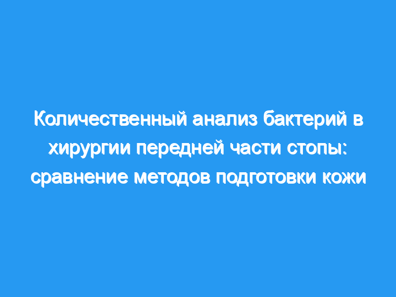 В настоящее время отсутствует консенсус относительно оптимального решения и методов подготовки, необходимых для уменьшения количества бактерий, присутствующих во время операции на передней части стопы. Поэтому мы сравнили влияние повидин-йода и хлоргексидина глюконата на снижение бактериальной нагрузки и изучили любые дополнительные преимущества, полученные при предварительной обработке щеткой с щетиной. Пятьдесят последовательных пациентов, перенесших операцию на передней части стопы, были включены в исследование и рандомизированы для получения одного из двух хирургических препаратов для кожи (Повидин-йод 1% с изопропиловым спиртом 23% или хлоргексидин глюконат 0,5% с изопропиловым спиртом 70%). В дополнение к обработке кожи стопы рандомизированным раствором, другую стопу испытуемых также протирали стерильной хирургической щетинной щеткой в течение трех минут, а затем окрашивали тем же раствором. Мазки были взяты с трех участков и проанализированы с помощью качественного и количественного анализа до и после подготовки.