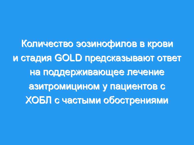 В заключение следует отметить, что поддерживающая терапия азитромицином, по-видимому, эффективна у пациентов с ХОБЛ с частыми обострениями, которые классифицируются либо как 1-2-я стадия GOLD, либо как GOLD C, и у которых количество эозинофилов в крови ≥2,0%.