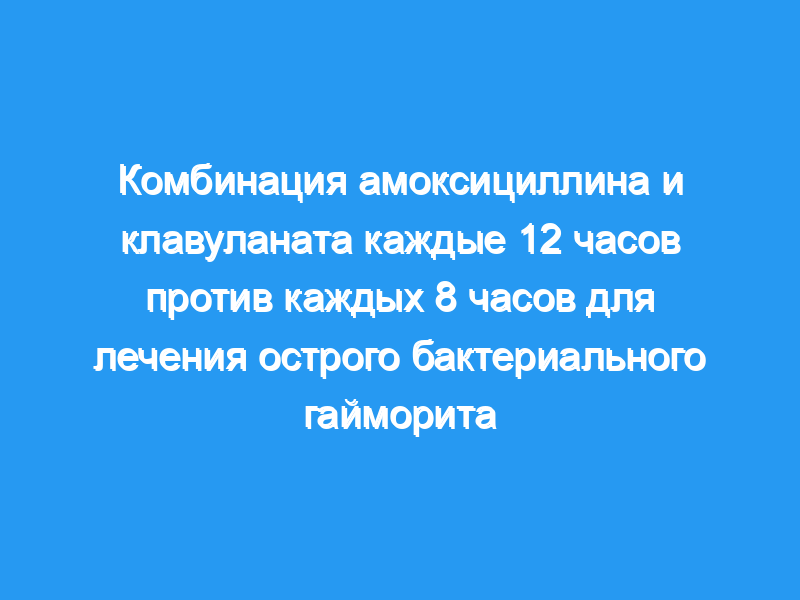 Амоксициллин и клавуланат, вводимые каждые 12 часов, так же эффективны и безопасны, как и введение каждые 8 часов для лечения острого бактериального гайморита.