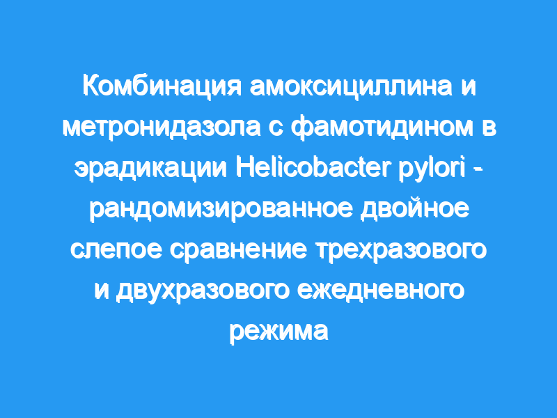 Определить эффективность трехразового ежедневного (т.е. внутривенного) по сравнению с двухразовым (б.и.д.) режимом комбинированного приема амоксициллина, метронидазола и фамотидина в эрадикации Helicobacter pylori и влияние резистентности к метронидазолу на исход лечения. Пациенты: Отобранные пациенты имели однозначные доказательства инфекции H. pylori на основании уреазного теста, посева и гистологии и имели либо язвенную болезнь, либо неязвенную диспепсию. Дизайн: Исследование было сравнительным и двойным слепым исследованием, и пациенты были рандомизированы для получения либо амоксициллина 750 мг внутривенно и метронидазола 500 мг внутривенно в течение 12 дней, либо амоксициллина 1000 мг внутривенно и метронидазола 500 мг внутривенно.. в течение 12 дней. Обе группы также получали фамотидин в дозе 40 мг в течение 6 недель. Основной показатель результата: Пациенты были оценены на предмет успешной эрадикации, определяемой как отсутствие бактерий во всех тестах, по крайней мере, через 4 недели после завершения антибактериальной терапии с помощью повторной гастроскопии.