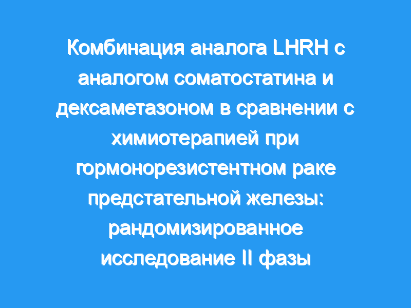 Проспективно оценить комбинацию аналога лютеинизирующего гормона-рилизинг-гормона с аналогом соматостатина и дексаметазона у пациентов с гормонорезистентным раком предстательной железы (HRPC) в рандомизированном исследовании II фазы. HRPC представляет собой сложную терапевтическую проблему. Спасительная химиотерапия является обычным подходом на этой стадии заболевания. Комбинация аналога лютеинизирующего гормона-рилизинг-гормона с аналогом соматостатина и дексаметазона дала объективные клинические результаты при HRPC.