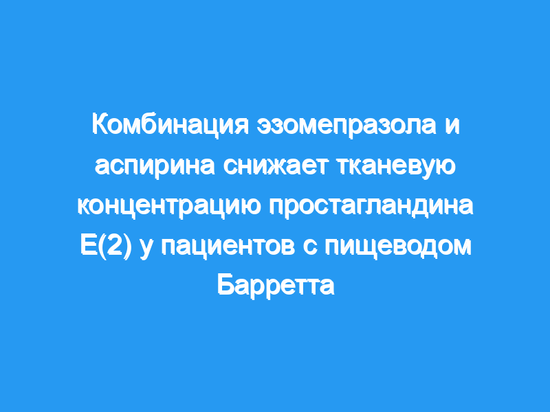 В комбинации с эзомепразолом кратковременное введение более высоких доз аспирина, но не более низких доз или отсутствие аспирина, значительно снижало концентрацию PGE(2) в тканях у пациентов с БЭ либо без дисплазии, либо с дисплазией низкой степени. Эти данные подтверждают дальнейшую оценку более высоких доз аспирина и эзомепразола для профилактики аденокарциномы пищевода у этих пациентов. Регистрационный номер клинического испытания NCT00474903.