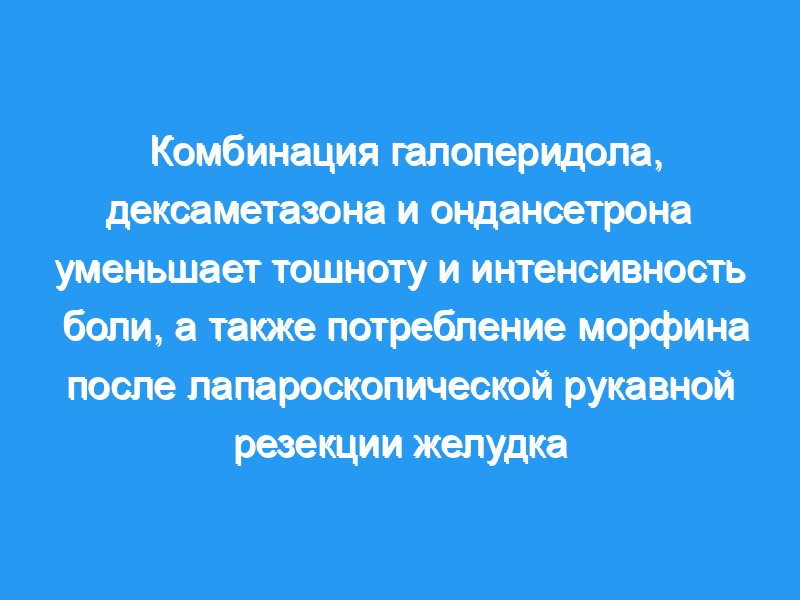 Комбинация галоперидола, ондансетрона и дексаметазона уменьшала интенсивность тошноты и боли, а также потребление морфина у послеоперационных пациентов с ожирением, перенесших МСУ.