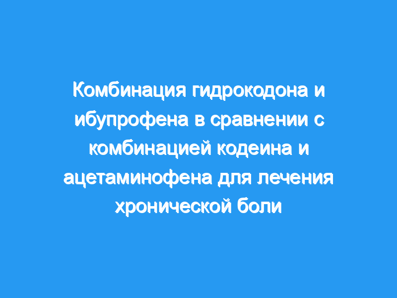 Целью этого исследования было сравнить эффективность комбинации гидрокодона в дозе 7,5 мг и ибупрофена в дозе 200 мг с комбинацией кодеина в дозе 30 мг и ацетаминофена в дозе 300 мг для лечения хронической боли.