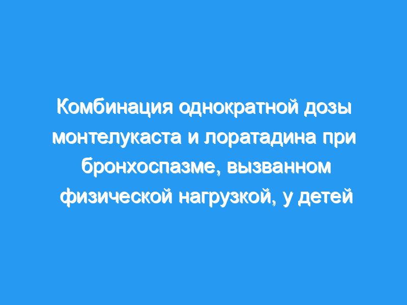 Целью исследования была оценка защитного эффекта однократного комбинированного лечения, включающего монтелукаст (5 мг) и лоратадин (10 мг), на вызванную физической нагрузкой бронхоконстрикцию у детей, страдающих астмой.