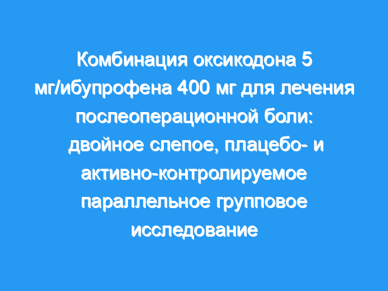 В этом исследовании сравнивалась эффективность и безопасность однократной дозы оксикодона 5 мг/ибупрофена 400 мг по сравнению с его отдельными компонентами и плацебо в модели экстракции третьего моляра.