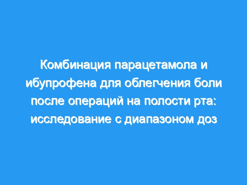 Было показано, что комбинированный парацетамол и ибупрофен более эффективны, чем любой из компонентов по отдельности при острой боли у взрослых, но зависимость дозы от дозы не была подтверждена. Целью данного исследования было определить зависимость анальгетической дозы от эффекта различных потенциальных доз комбинации фиксированных доз, содержащей парацетамол и ибупрофен, после операции на третьем моляре.