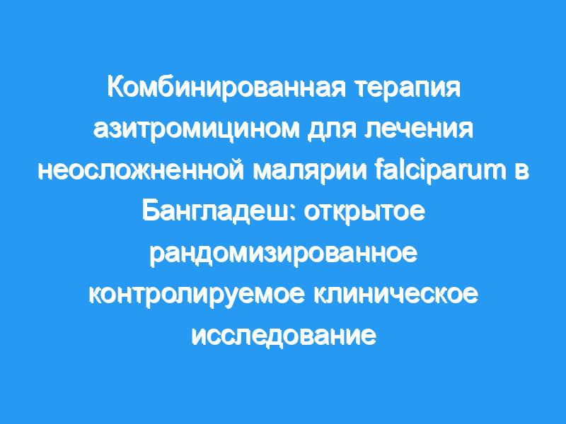 Наши данные свидетельствуют о том, что азитромицин-артесунат является эффективным и хорошо переносимым средством лечения пациентов с неосложненной малярией falciparum в Бангладеш.