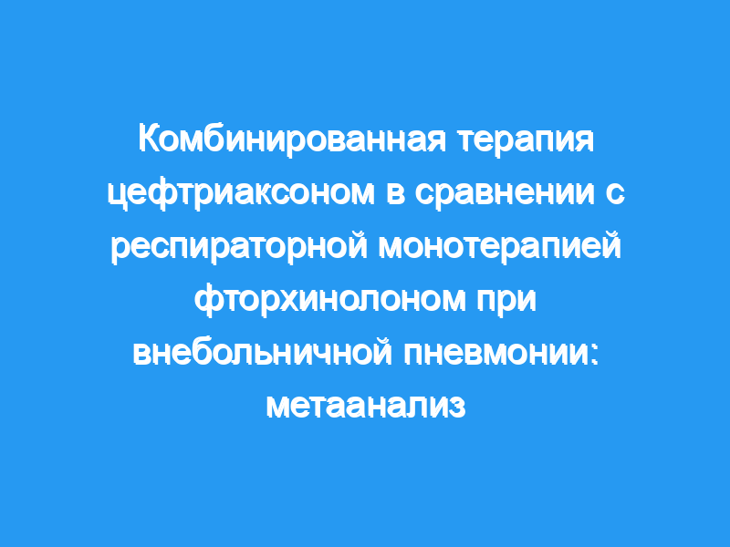 Целью данного исследования было выяснить, связана ли комбинированная терапия цефтриаксоном с лучшими клиническими исходами, чем монотерапия респираторными фторхинолонами у взрослых с внебольничной пневмонией (ВП). Мы провели мета-анализ опубликованных исследований.