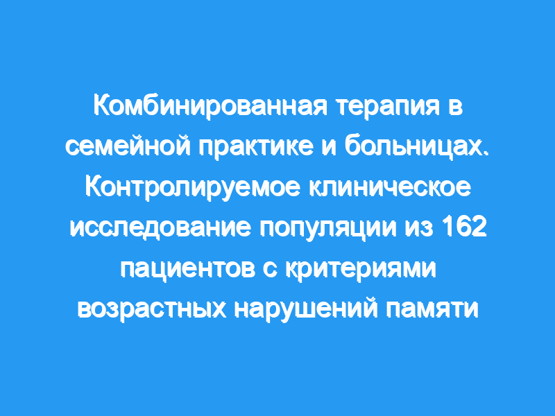 Оценить сочетание медикаментозной и когнитивной терапии при возрастных нарушениях памяти (AAMI). Пациенты и методы: Было проведено двойное слепое рандомизированное исследование с участием 162 пациентов с возрастными нарушениями памяти, отобранных и наблюдаемых их врачами общей практики. Два метода вмешательства — медикаментозная и когнитивная терапия — оценивались в сочетании. Три рандомизированные параллельные группы по 54 пациента в каждой в возрасте 55 лет и старше находились под наблюдением и лечились в течение 3 месяцев. После периода вымывания плацебо в течение 10 дней одна группа получала 2,4 г пирацетама, другая группа — 4,8 г, а третья — плацебо.
