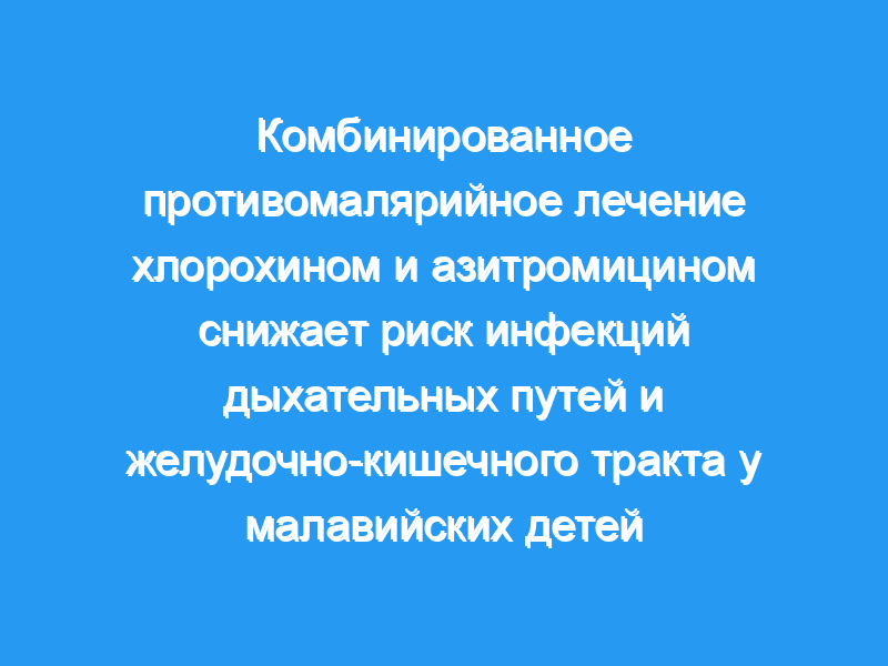 У детей, регулярно получавших хлорохин-азитромицин, было меньше инфекций дыхательных путей и желудочно-кишечного тракта, чем у тех, кто получал только хлорохин. Эта противомалярийная комбинация потенциально может снизить бремя бактериальных инфекций среди детей в странах, эндемичных по малярии.