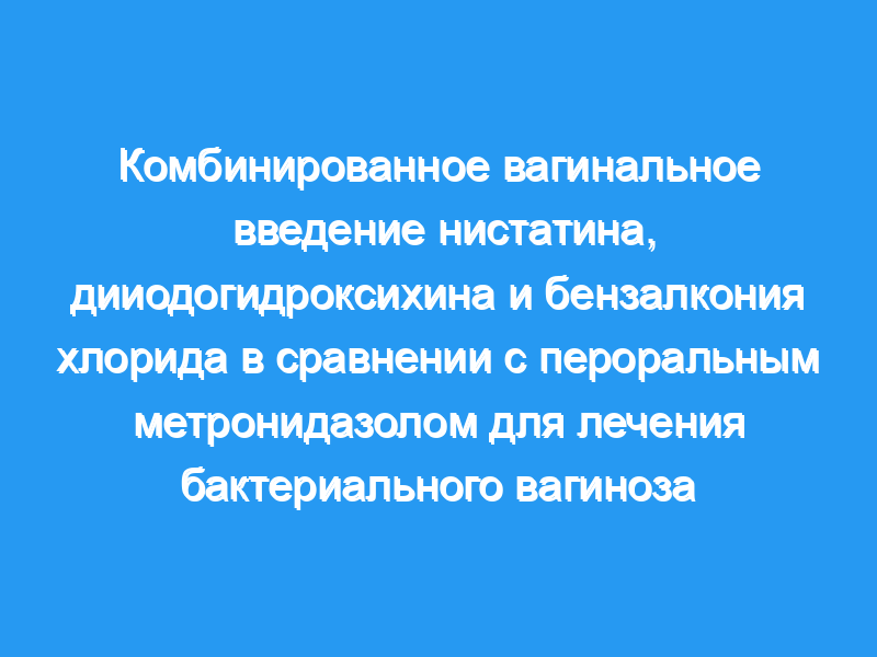 Сравнить комбинированное вагинальное введение нистатина, дииодогидроксихина и бензалкония хлорида по сравнению с пероральным приемом метронидазола для лечения бактериального вагиноза (БВ).