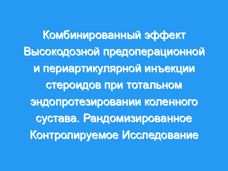 Послеоперационная боль остается основным препятствием для выздоровления пациента после тотального эндопротезирования коленного сустава (ТКА). Было индивидуально показано, что периартикулярные кортикостероиды в составе местных инфильтрационных анальгетиков (LIA) и высоких доз внутривенных кортикостероидов улучшают контроль боли после ТКА. Однако потенциальные взаимодействия между ними не были исследованы. Это исследование направлено на оценку любого комбинированного эффекта обоих путей введения кортикостероидов при ТКА.