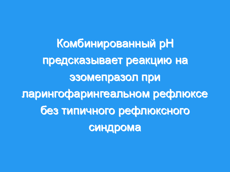 Цели/гипотеза: Факторы, предсказывающие эффективность ингибиторов протонной помпы (ИПП) у пациентов с подозрением на ларингофарингеальный рефлюкс (ЛПР), неясны. Лечение ИППП у пациентов без сопутствующего пищеводного синдрома остается спорным. Мы исследовали, может ли комбинированный рН предсказать реакцию на лечение ИППП при ЛПР с сопутствующим типичным рефлюксным синдромом (CTRS) или без него. Дизайн исследования: Проспективное открытое терапевтическое когортное исследование.