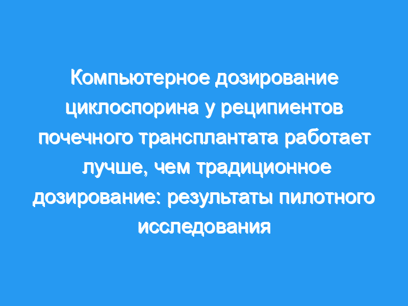 Цель настоящее пилотное исследование состояло в сравнении точности определения CsA TDM опытными клиницистами с компьютерным режимом дозирования.