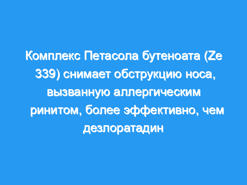 Симптомы аллергического ринита, такие как зуд, чихание, ринорея и заложенность носа, значительно снижают качество жизни пациентов. По сравнению с антагонистами гистаминовых и лейкотриеновых рецепторов комплекс петасола бутеноата Ze 339 обладает фармакологически отличными свойствами. In vitro он ингибирует биосинтез лейкотриенов и высвобождение медиаторов из активированных эозинофилов.