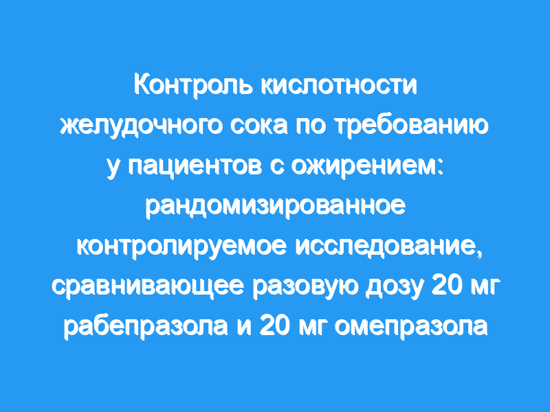 Ожирение связано с риском развития гастроэзофагеальной рефлюксной болезни. Фармакодинамическая эффективность ингибиторов протонной помпы специально не оценивалась у пациентов с ожирением. Целью этого исследования было сравнить антисекреторный ответ на однократную пероральную дозу 20 мг рабепразола, 20 мг омепразола и плацебо у пациентов с ожирением.