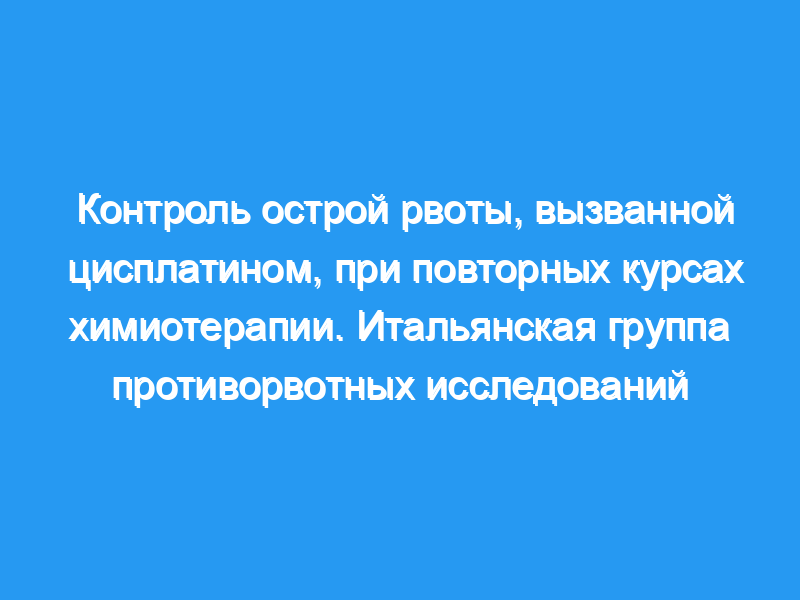 Поэтому важно стремиться к хорошему противорвотному контролю в первом цикле химиотерапии цисплатином.