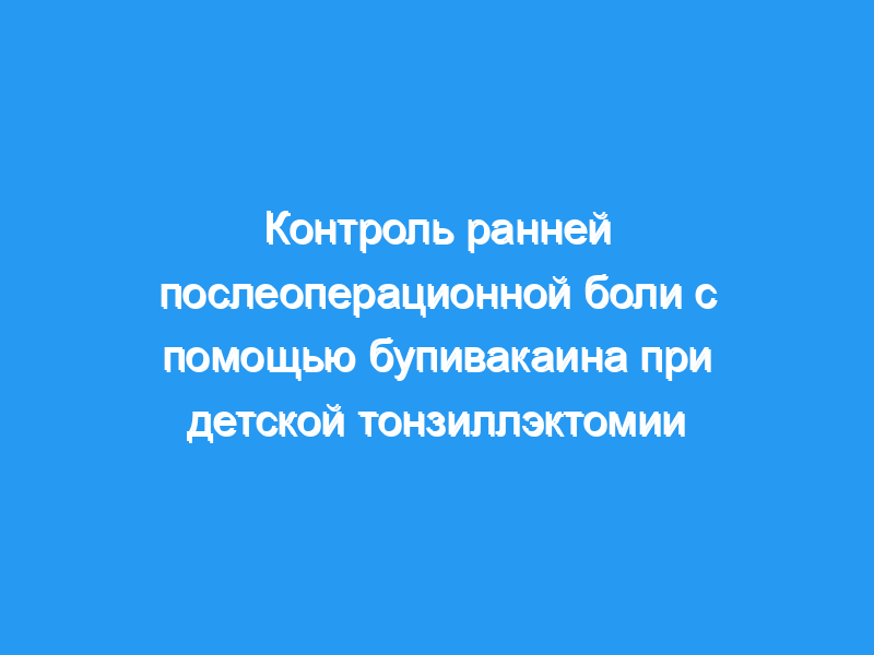 Ранняя послеоперационная боль после детской тонзиллэктомии остается серьезным препятствием для быстрого выздоровления и плавного выздоровления.
