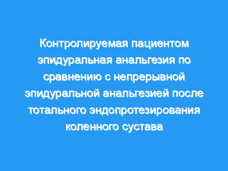 Количество потребляемого раствора бупивакаин-фентанил было значительно меньше при PCEA, чем при непрерывной инфузии раствора бупивакаин-фентанил, не влияя на качество послеоперационной анальгезии после тотального эндопротезирования коленного сустава. У нескольких пожилых пациентов были трудности с управлением аппаратом PCEA.