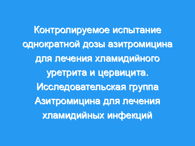 В настоящее время не существует однократной терапии, эффективной при лечении уретральных или эндоцервикальных инфекций, вызванных Chlamydia trachomatis. Азитромицин — это новый азалидный антибиотик, который обладает значительной активностью в отношении C. trachomatis, концентрируется внутриклеточно и имеет длительный период полураспада в сыворотке и тканях.