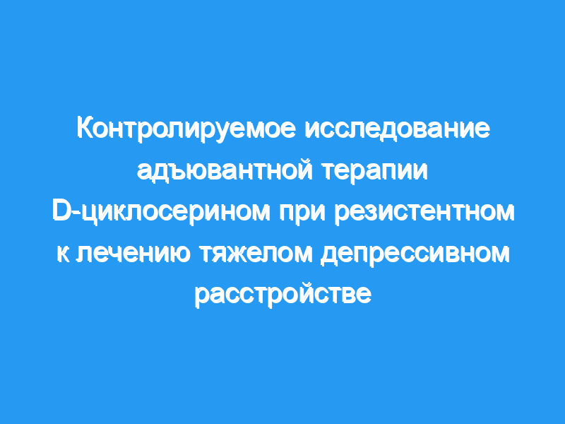 Соединения, которые снижают функцию N-метил-d-аспартатного рецептора (NMDAR), включая антагонисты NMDAR и частичные агонисты в NMDAR-ассоциированном участке глицина (GLY), могут действовать как антидепрессанты. Антибиотический препарат d-циклосерин (DCS) действует как частичный агонист в участке NMDAR-GLY. Доклинические и клинические данные свидетельствуют о том, что в дозах >, or=100 мг/сут DCS действует как функциональный антагонист NMDAR и может оказывать антидепрессивное действие. Двадцать два резистентных к лечению пациента с тяжелой депрессией приняли участие в двойном слепом плацебо-контролируемом 6-недельном перекрестном исследовании, в котором к их текущим антидепрессантам добавляли ДКС в дозе 250 мг/сут.