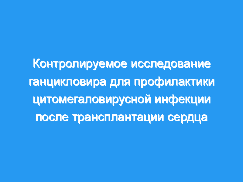 Из-за необходимой иммуносупрессии у реципиентов трансплантата сердца часто возникают осложнения, вызванные цитомегаловирусом (ЦМВ), включая пневмонию, эзофагит, гастрит и синдром лихорадки, гепатита и лейкопении. Мы провели контролируемое исследование для оценки профилактического применения ганцикловира для предотвращения заболеваний, вызванных ЦМВ, после трансплантации сердца.