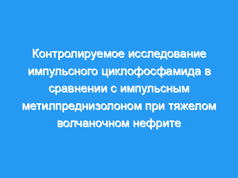 Мы провели проспективное рандомизированное исследование, в котором сравнивали импульсный циклофосфамид и импульсный метилпреднизолон у 29 пациентов с тяжелым волчаночным нефритом в activit.