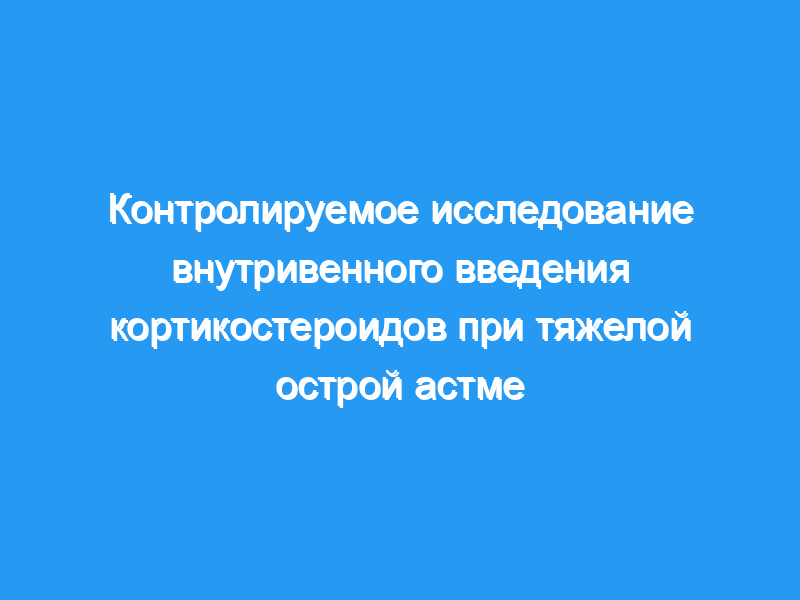 Значение кортикостероидов при тяжелой острой астме продолжает обсуждаться. Девяносто последовательных пациентов, поступивших в отделение неотложной помощи с тяжелой острой астмой, были изучены в рандомизированном двойном слепом контролируемом исследовании для определения эффективности кортикостероидов. Восемьдесят два пациента завершили исследование. Все они получали кислородную терапию и интенсивное лечение бронхолитиками. Пациенты были разделены на три группы для лечения стероидами, которые получали внутривенное введение метилпреднизолона в дозе 10 мг/кг каждые четыре часа в течение 48 часов (29 пациентов, группа А), внутривенное введение метилпреднизолона в дозе 2 мг/кг каждые 4 часа в течение 48 часов (27 пациентов, группа В) или без внутривенного введения кортикостероидов (26 пациентов, группа В). группа C).