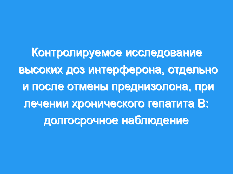 Это исследование было разработано для оценки безопасности и эффективности высоких доз интерферона, с предварительной обработкой преднизоном или без нее, у пациентов с хроническим гепатитом В. Пациенты были рандомизированы на две группы лечения: группа I (n = 26) получала шесть недель преднизолона с последующим двухнедельным периодом без лекарств, и затем 10 миллионов единиц (МЕ) интерферона альфа-2b три раза в неделю подкожно в течение 16 недель, группа II (n = 24) использовалась в качестве контроля в течение 24 недель, а затем лечилась интерфероном.