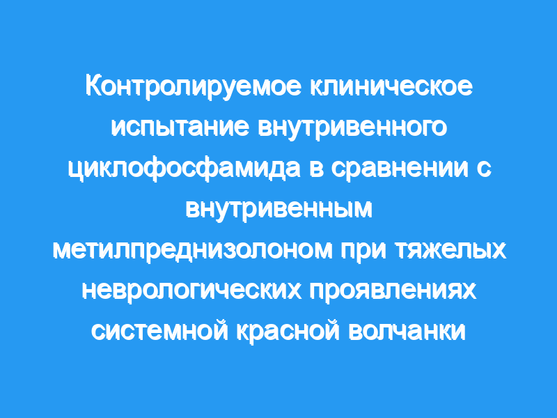 Для определения наилучшего препарата, дозы и лечения. Пациенты и методы: Исследование представляло собой контролируемое клиническое исследование в двух центрах третичной медицинской помощи пациентов с СКВ в соответствии с критериями ACR, с эпизодическим (не более 15 дней) началом тяжелых проявлений НП, таких как судороги, неврит зрительного нерва, периферическая или краниальная невропатия, кома, заболевание ствола мозга или поперечный миелит. Индукционное лечение 3 г внутривенно метилпреднизолона (МП) с последующим либо внутривенным ежемесячным циклофосфамидом (Cy), либо внутривенным МП раз в два месяца каждые 4 месяца в течение 1 года, а затем внутривенным МП или внутривенным МП каждые 3 месяца в течение еще одного года. Первичной конечной точкой был ответ на лечение: улучшение по крайней мере на 20% по сравнению с исходными состояниями по клиническим, лабораторным или специфическим неврологическим показателям тестирования.