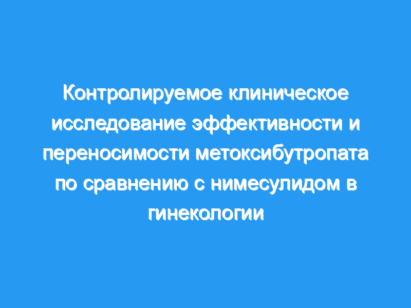 Это было двойное слепое исследование, в котором приняли участие 60 пациенток детородного возраста (возраст от 19 до 42 лет) с острыми или подострыми воспалительными заболеваниями половой системы. Тридцать женщин в течение 20 дней получали пероральный метоксибутропат в дозе 1200 мг/сут. Еще тридцать женщин получали нимесулид в качестве контрольного препарата. Перорально вводили гранулы нимесулида в суточной дозе 200 мг. Эффективность оценивали путем оценки симптомов и признаков на 8, 15, 21 и 30-й день после начала лечения. Оценивались следующие симптомы: тазовая боль, вздутие живота, болезненность молочных желез, дисменорея и т.д. Оценивались следующие признаки: объем и консистенция матки и придатков, тип и объем выделений из влагалища, болезненность таза, болезненность влагалища и т.д. Результаты и выводы: Все шестьдесят пациентов, включенных в исследование, завершили исследование, в конце которого было показано, что препараты одинаково эффективны: между 21-м и 30-м днем после начала лечения, разрешение оцененных признаков и симптомов было почти полным, особенно с метоксибутропатом. Наконец, переносимость была замечательной: побочные эффекты были незначительными и умеренными, также в этом случае метоксибутропат был немного лучше.