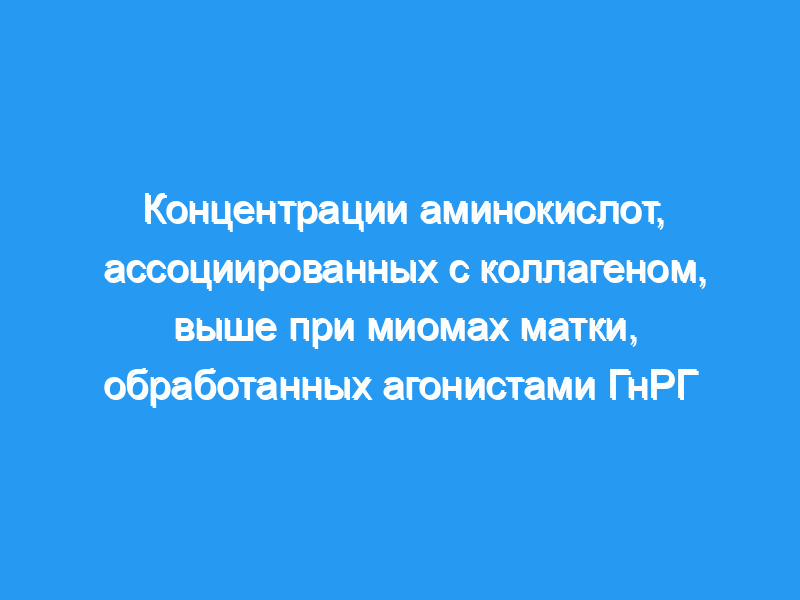 Концентрации аминокислот, содержащихся в коллагене, были значительно выше в миомах матки у пациенток, получавших агонист ГнРГ, по сравнению с миомами контрольной группы, получавшей плацебо. Кроме того, наши наблюдения показывают, что уменьшение объема миомы матки, связанное с терапией агонистами ГнРГ, связано с изменениями во внеклеточном матриксе.