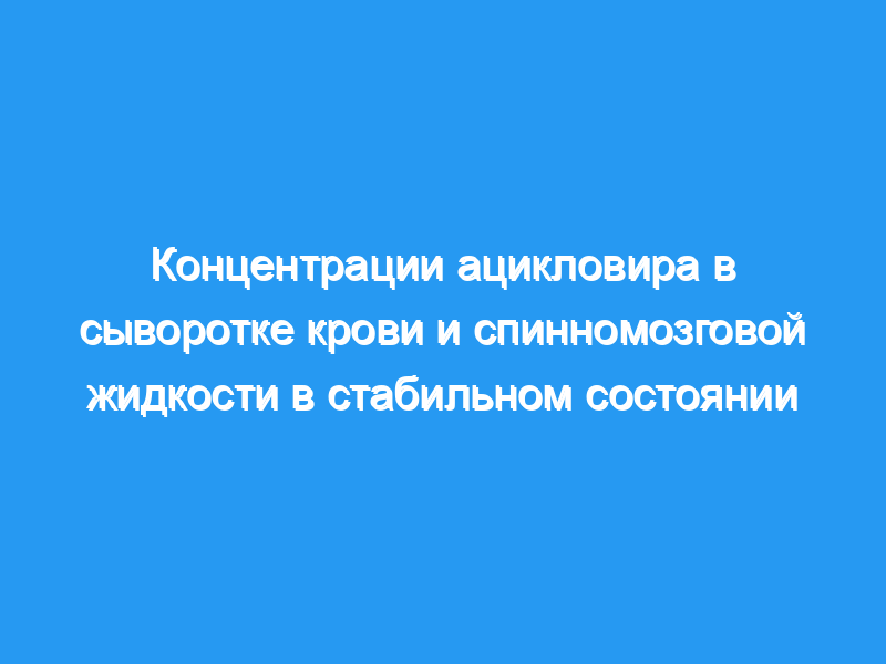 В ликворе концентрация ацикловира была относительно стабильной, со средним значением 0,83 мкм, в то время как концентрация ацикловира в сыворотке крови изменялась со средними пиковыми и минимальными концентрациями 4,08 и 2,47 мкм соответственно.
