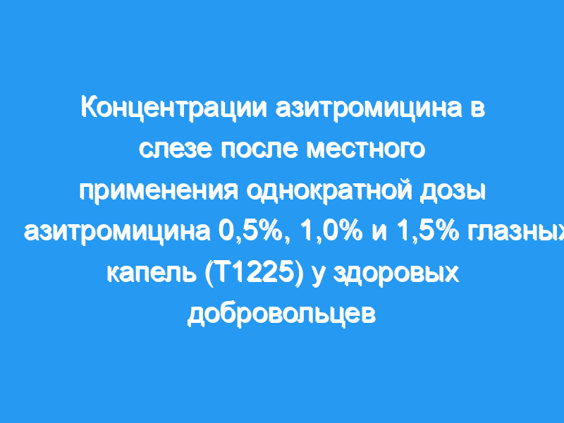 Для оценки концентрации азитромицина в слезе после одной капли 0,5%, 1,0% и 1,5% глазных капель T1225.