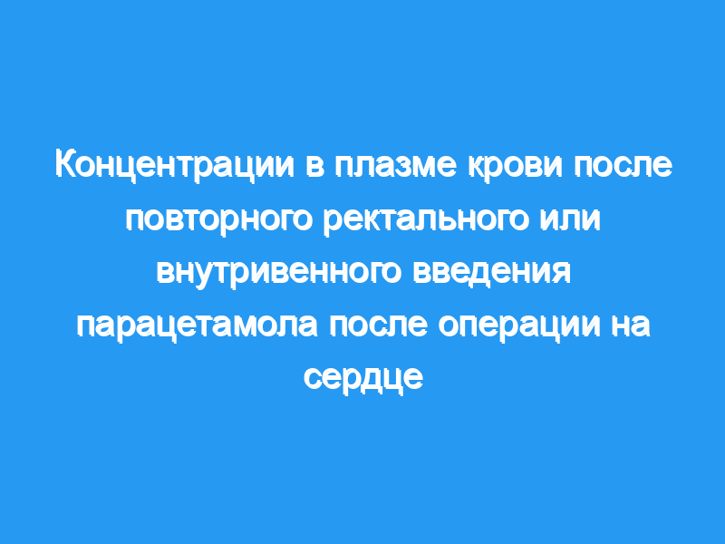 Парацетамол обычно используется для послеоперационного обезболивания в сочетании с более сильнодействующими анальгетиками. Наилучший способ введения парацетамола после серьезной операции, когда пероральный прием может быть неоптимальным, неизвестен. Нашей основной целью было изучение концентрации парацетамола в плазме крови после 1-й и 4-й дозы 1 г парацетамола, введенного ректально или внутривенно (внутривенно) после серьезной операции.