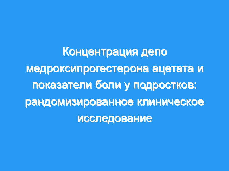 Было начато проспективное, однослепое, рандомизированное исследование, чтобы определить, различалась ли боль в месте инъекции у подростков, получавших две концентрации 150 мг депо медроксипрогестерона ацетата (DMPA). Девяносто пять подростков, нуждающихся в инъекционной контрацепции, были рандомизированы для получения 150 мг ДМПА следующим образом: инъекция в дельтовидную мышцу 1,0 мл из флакона с однократной дозой, содержащего 150 мг/мл, или 0,38 мл из флакона с несколькими дозами, содержащего 400 мг/мл ДМПА. Визуальная аналоговая шкала измерялась при каждом посещении и кумулятивно сравнивалась между группами.